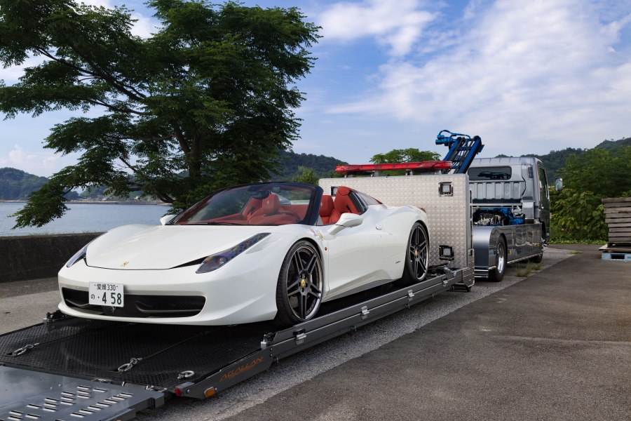 事故や故障などの路上トラブルの際、お電話頂けますと迅速に対応させていただきます。当社のローダーは三菱ふそう キャンターベースの極東フラトップを導入しており、路面とフラットな状態まで荷台が下がります。ローダウン車のエアロパーツなど、車体を傷める事なくお運び致します。大手保険各社のロードアシストサービスとも連携しておりますので、無駄な出費を控える事が可能です。