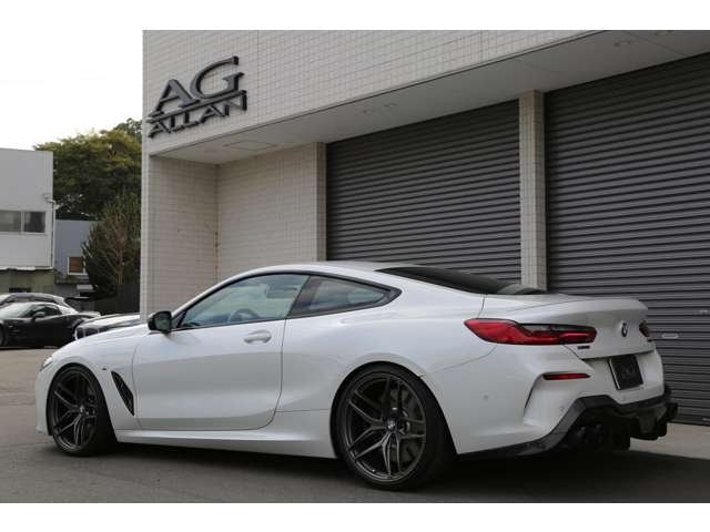 BMW M850i 左ハンドル車入庫 ブラックレザー(ベンチレーション)ローダウン+21インチ鍛造アルミホイール付きBower & Wilkins オーディオシステム ACC