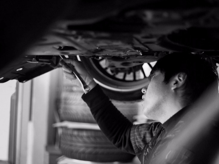 当社は、納車前整備として、国家資格整備士の厳しい目で35項目以上のチェックを行います。仕入車両が届くと同時に、エンジンオイル・オイルエレメントの交換、水回りをチェックします。その後走行テストを実施し、不具合箇所は惜しみなく部品交換、納得いくまで整備したうえで納車させていただきます。内装の清潔感も厳しい確認項目の1つです。除菌・消臭、場合によりエアコンフィルターなども交換してお届けします。納車後の『整備クレームゼロ』を目標に、従業員が一丸となって整備・確認にあたります。